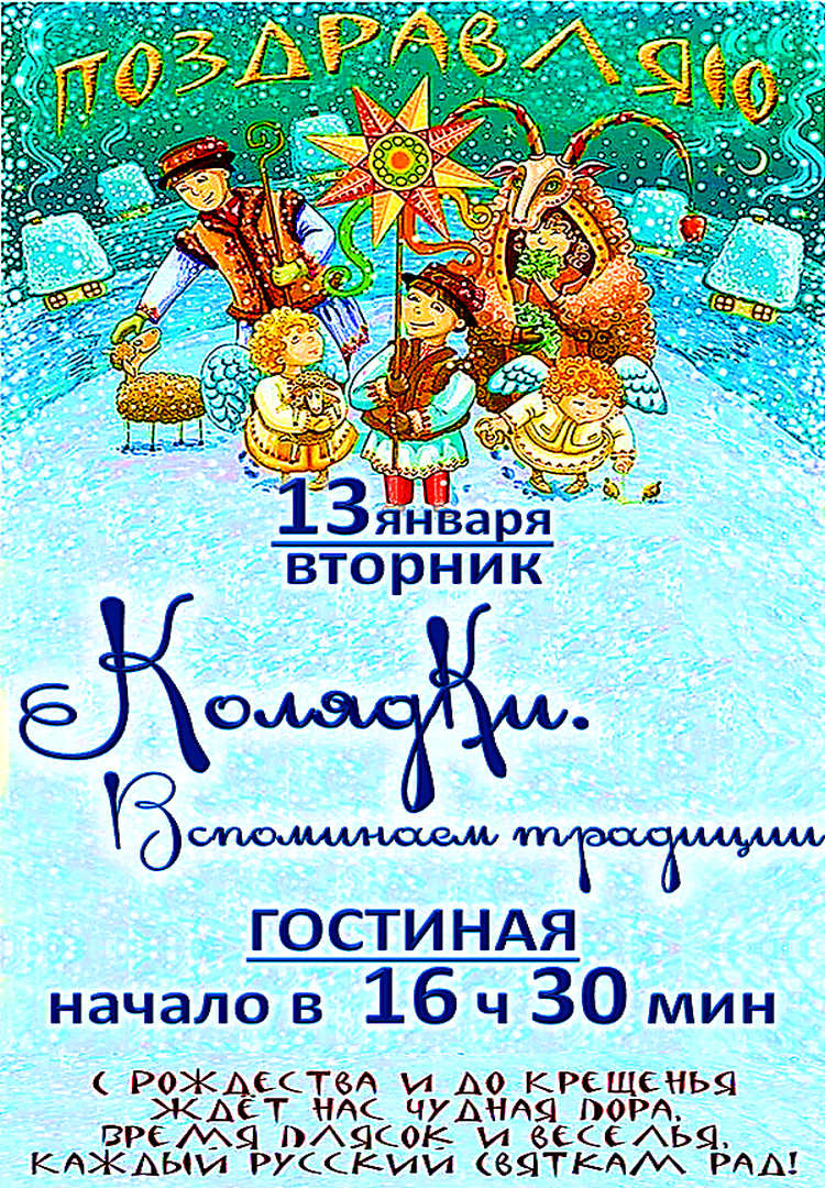 «Колядки. Вспоминаем традиции» 13.01.2026 Время: 16:30 Адрес: г. Москва, шоссе Энтузиастов, д. 88, Гостиная