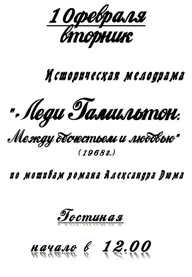 «Домашний кинотеатр Веры Грищенковой» 10.02.2026 Время: 12:00 Адрес: г. Москва, шоссе Энтузиастов, д. 88, Гостиная